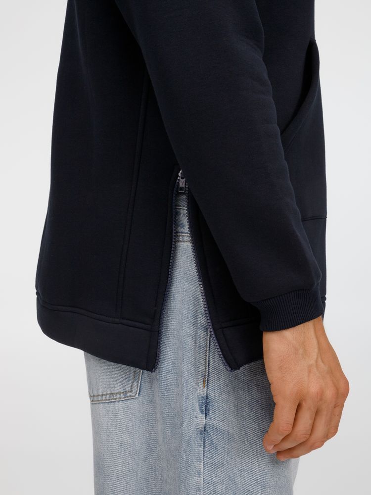 Худи унисекс удлиненного силуэта с молниями в боковых швах.