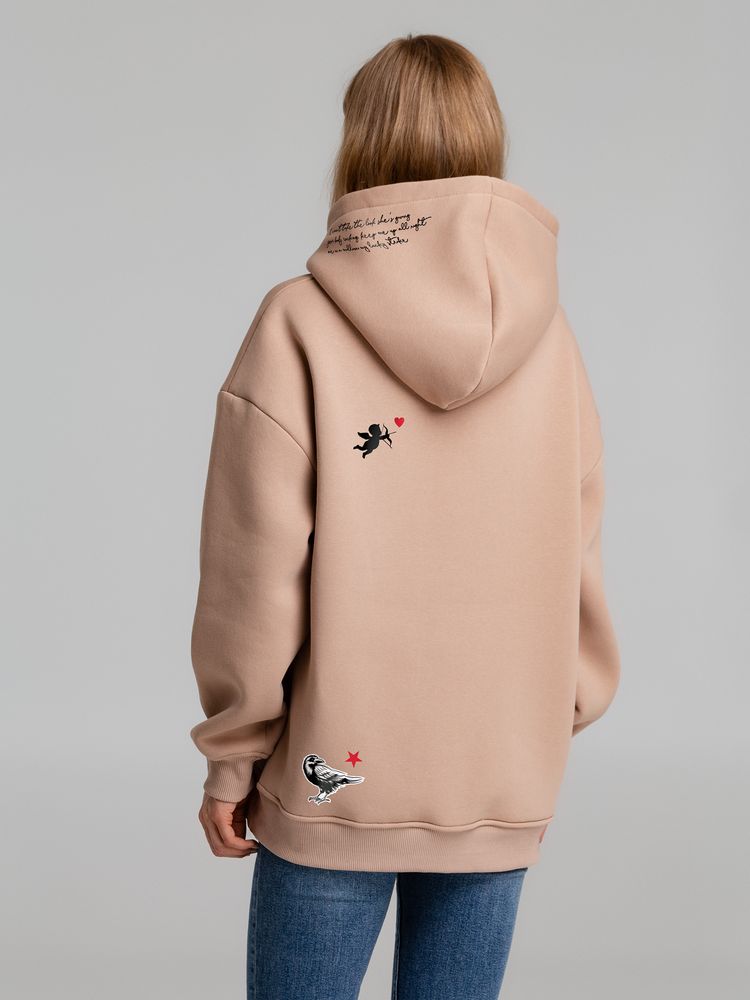 Худи оверсайз с термонаклейками Lucky Strike, бежевое
