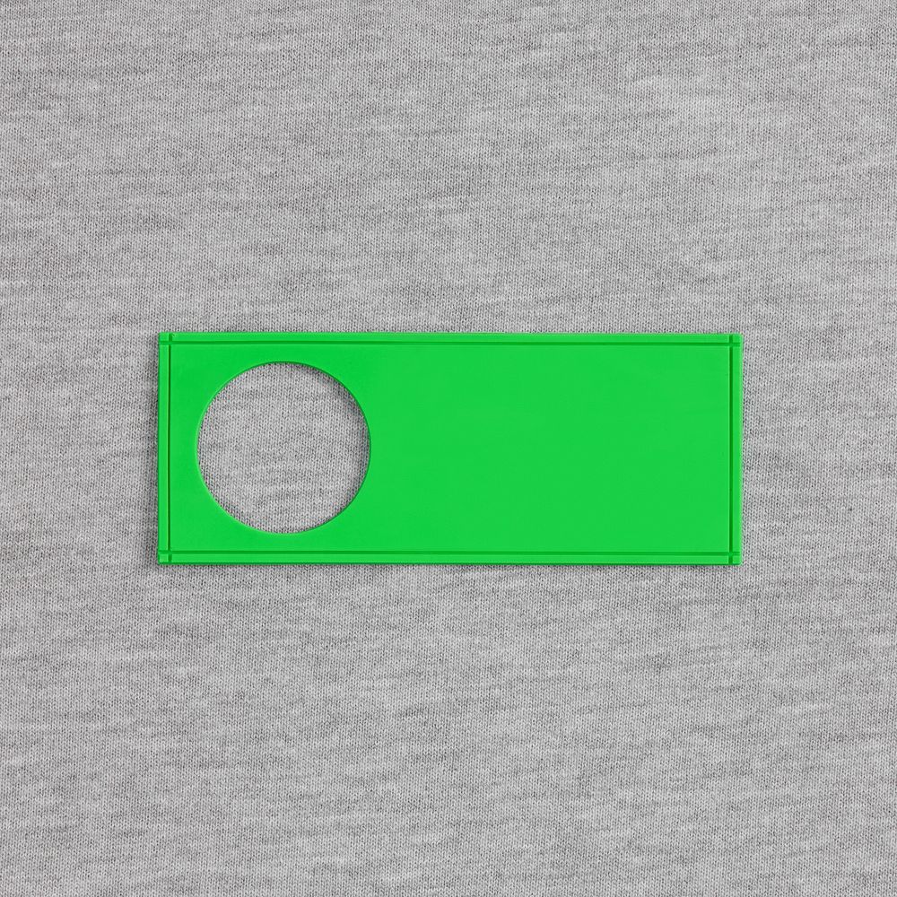 - сделать нанесение на изделии, поверх которого нашить лейбл так, чтобы вырубка стала частью целостного уникального дизайна.