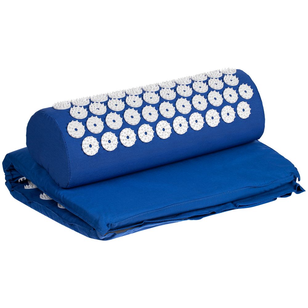 Массажный акупунктурный коврик с валиком Iglu, синий с белым