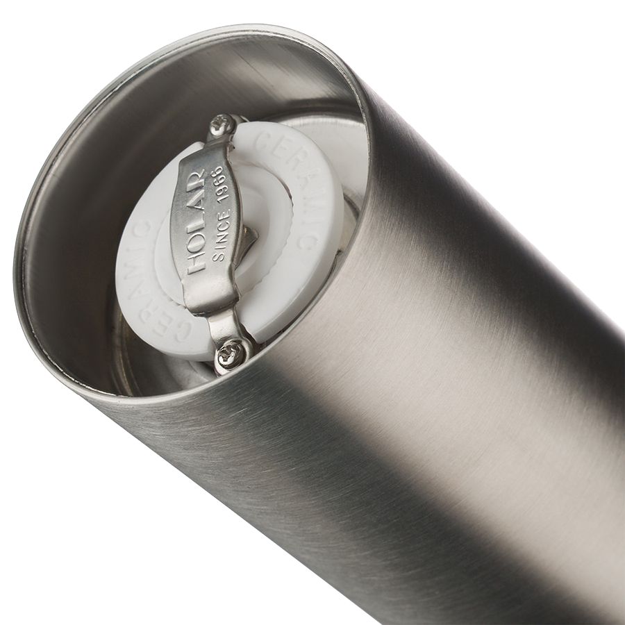 Мельница для перца в современном дизайне поможет во время готовки и украсит стол. Корпус выполнен из нержавеющей стали — материала повышенной прочности, который полностью безопасен для здоровья. Износостойкие жернова из качественной керамики хорошо измельчают кристаллы до состояния порошка. Степень помола можно регулировать.