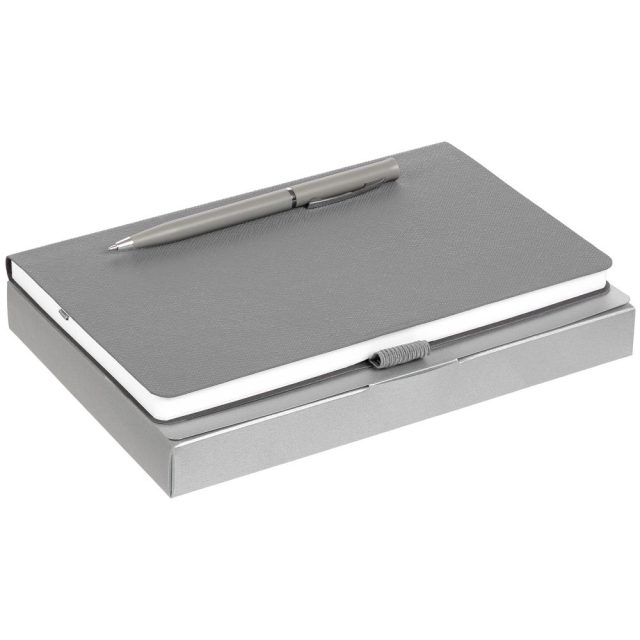 Зауженный ежедневник и ручка комплементарного оттенка в простой лаконичной коробке — готовое предложение делового подарка для сотрудников и партнеров.