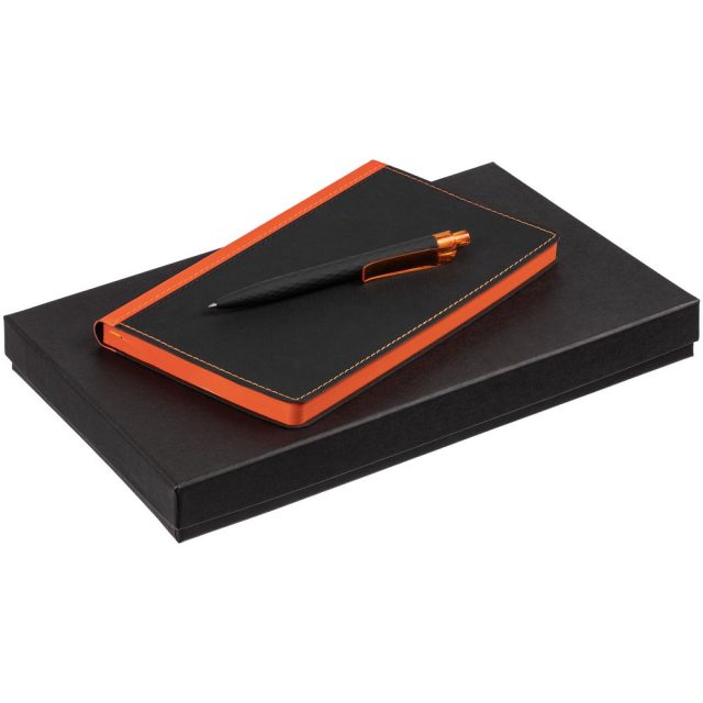 Стильный двухцветный ежедневник с гибкой обложкой и цветным обрезом, а также ручка в тон.