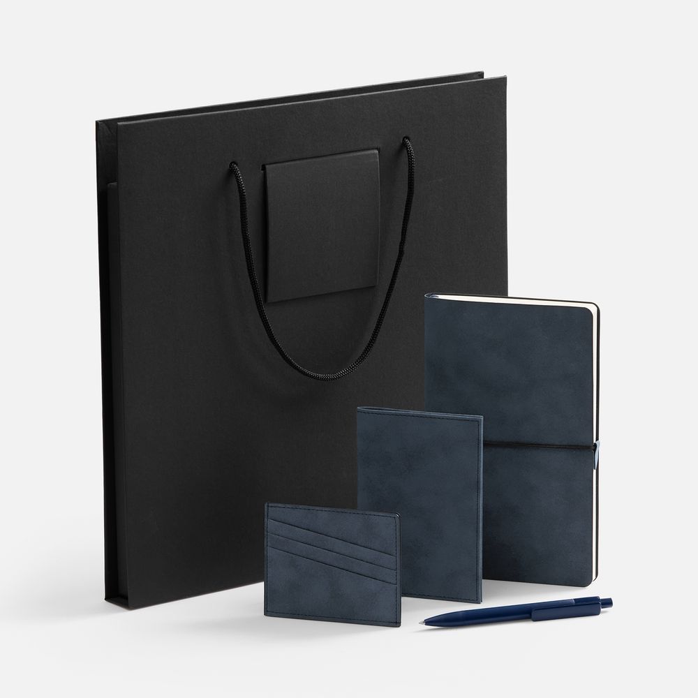 Набор с ежедневником и персональными аксессуарами из коллекции Nubuk в подарочной коробке с ручками одинаково хорошо исполнит роль как делового, так и личного подарка.