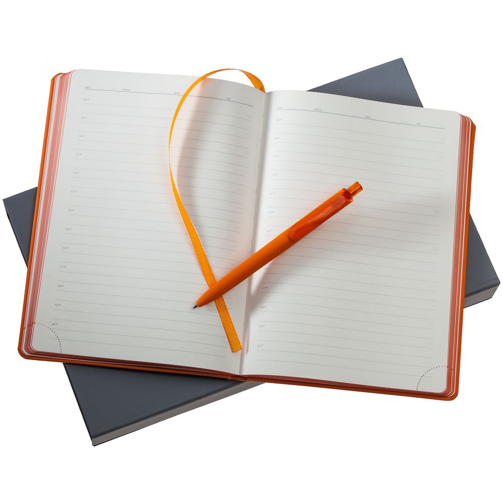 ежедневник — искусственная кожа; ручка — пластик; покрытие софт-тач; коробка — картон