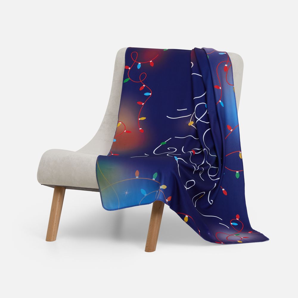 Праздничный плед-пожелание: лаконичное и воодушевляющее. Все сбудется! Стоит только загадать самое главное и стремиться к своей заветной мечте. А Вселенная подскажет, обнимет и согреет — прямо как этот красочный мягкий плед, словно по-настоящему мерцающий яркими огоньками.