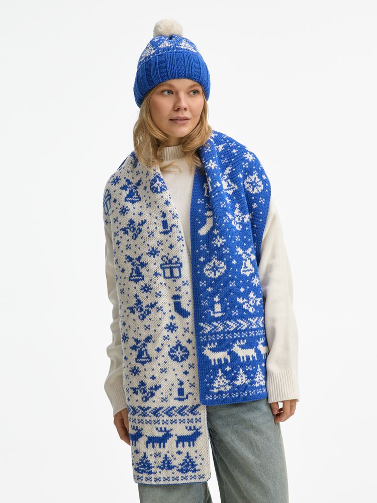 Шарф Holidale выполнен из высокообъемной полушерстяной пряжи, которая дарит тепло и ощущение праздничного уюта. Изысканный жаккардовый узор в традиционных зимних цветах, контрастные сочетания и объемная текстура подчеркивают праздничный характер аксессуара.