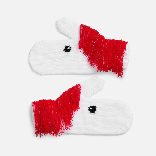 «Игогошки» — веселые варежки прямиком из детства! В такой дружной компании сразу хочется побежать на новогоднюю елку, лихо прокатиться с горки или поиграть в снежки. Грива у этих лошадок игриво колышется яркой бахромой на белоснежном фоне, а озорные глазки так и влюбляют в себя — такой задор сразу передается счастливому обладателю варежек, стоит их только надеть!