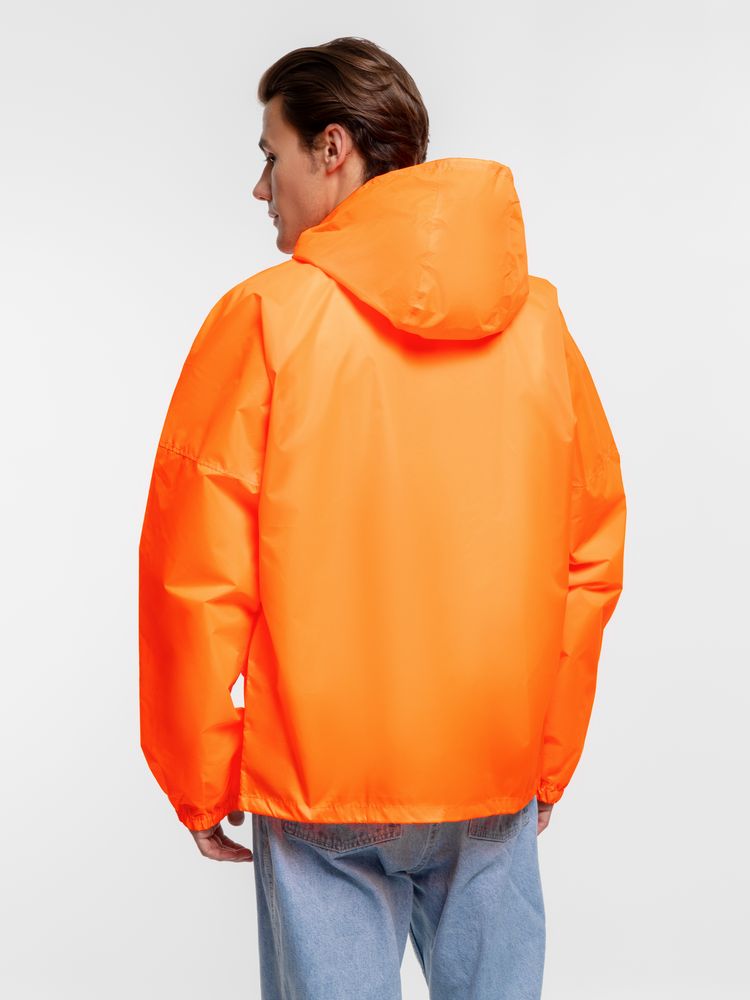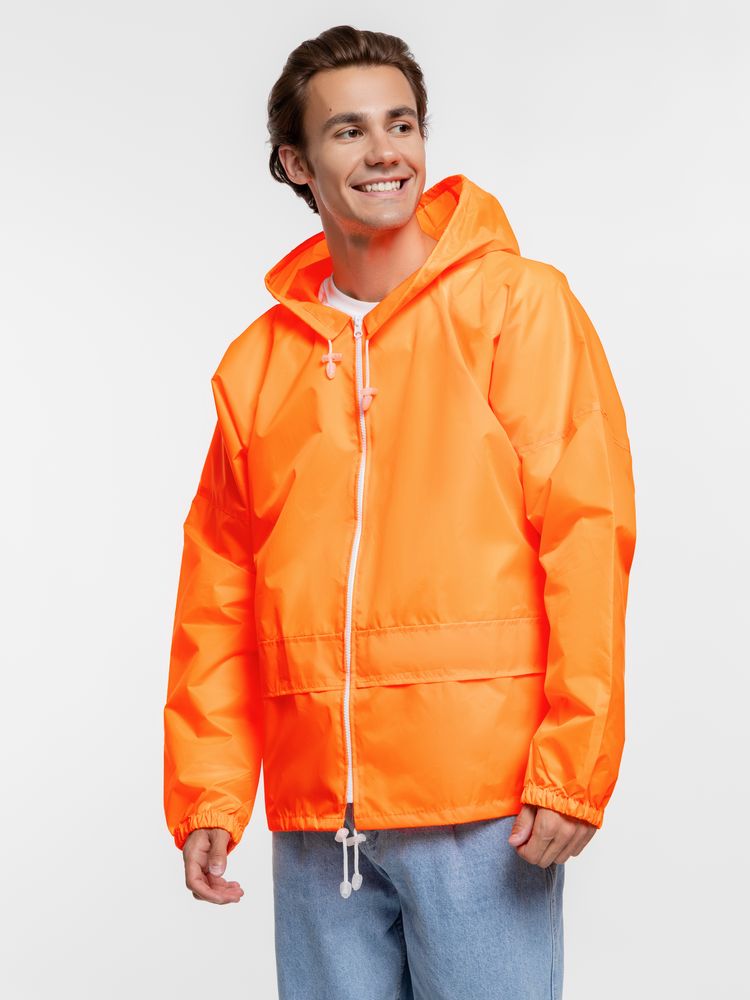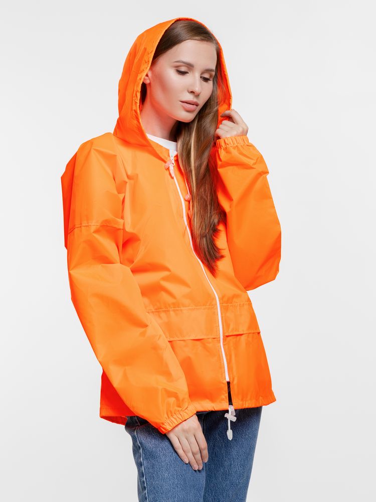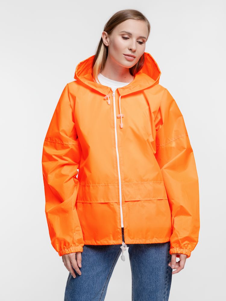 Укороченный дождевик свободного кроя из ткани таффета с влагозащитным покрытием. Складывается в мешочек — удобно брать с собой.