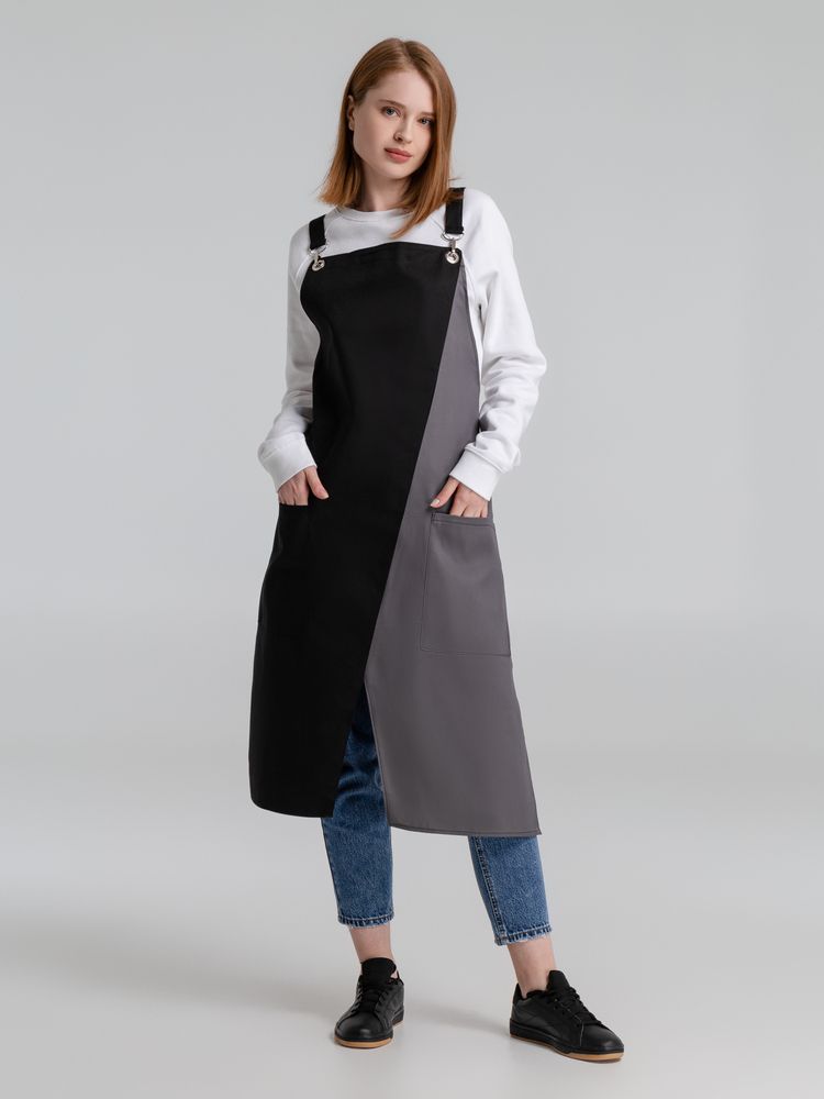 Фартук с длинными регулируемыми лямками и удобными карманами.