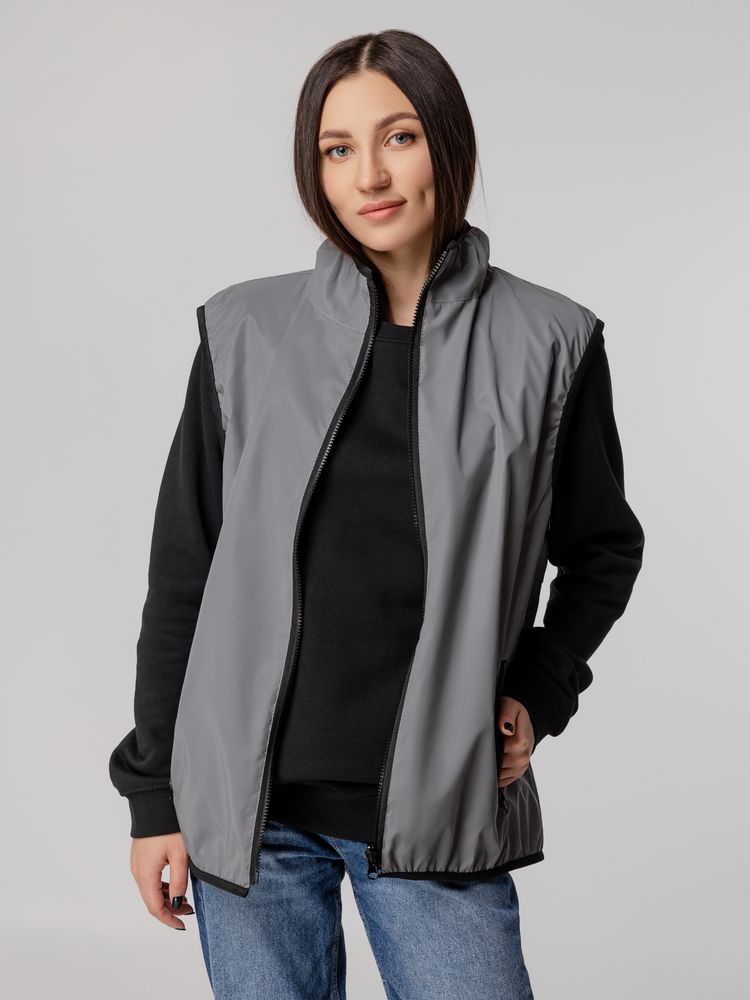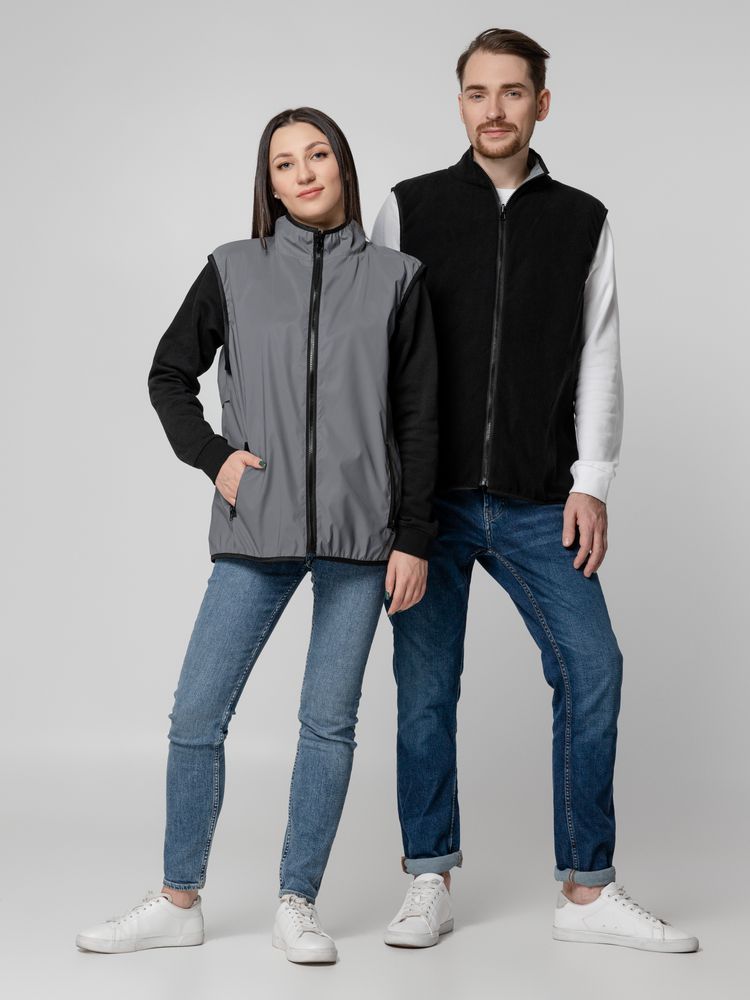 Можно носить как светоотражающей, так и флисовой стороной наружу.