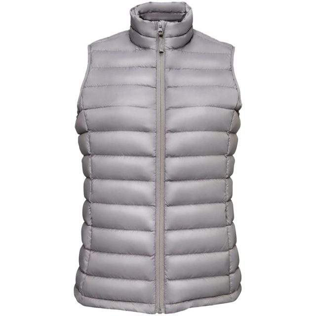 Женский стеганый жилет облегающего кроя на молнии с воротником-стойкой.