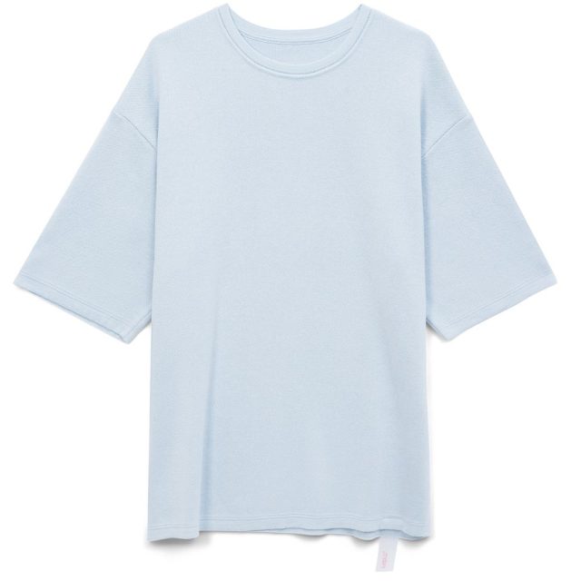Siluetti Volumica — плотный вязаный джемпер-футболка прямого кроя с круглым вырезом и спущенной линией плеча. Фирменная бирка из силиконовой ленты станет интересной деталью, привлекающей внимание на фоне общей лаконичности модели.