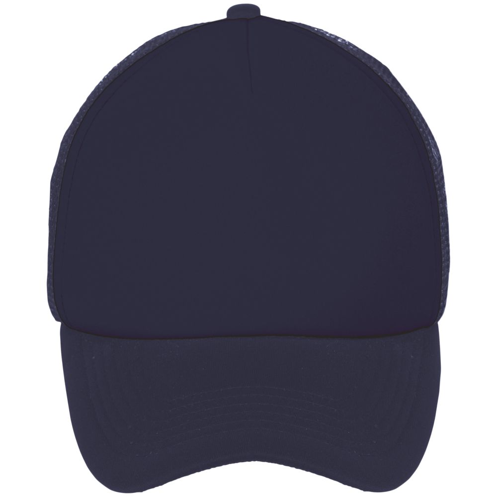 Бейсболка с 5 клиньями из сетки. Поролон в переднем клине (5 мм) и козырьке (3 мм). Регулируемая пластиковая застежка.