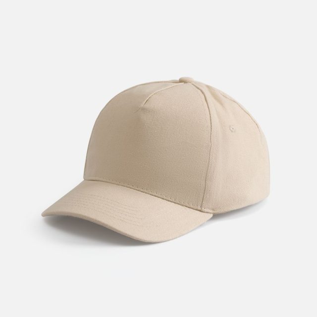 Модель бейсболки с 5-ю клиньями без лобового шва из плотного чесаного хлопка.