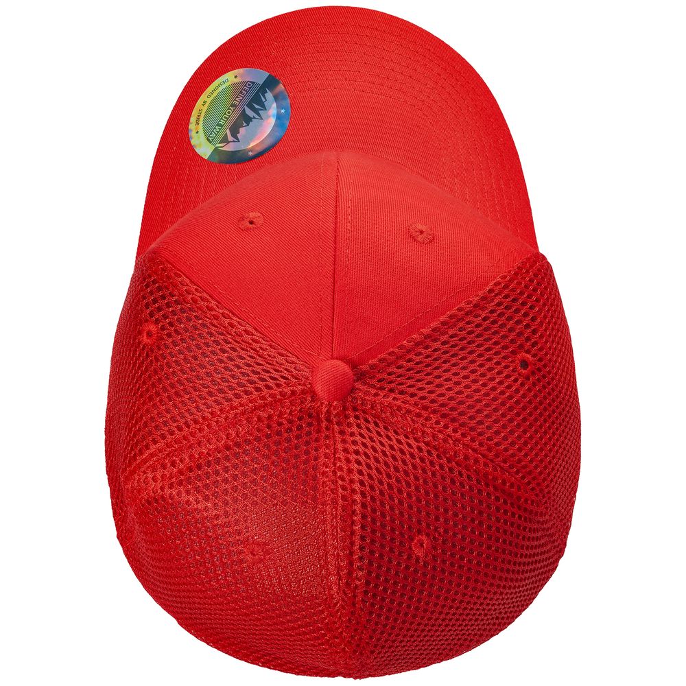 - Однотонная бейсболка из двух видов ткани: козырек и лобовые клинья из гладкого полотна, клинья на боках и на тыльной стороне из спортивной сетки