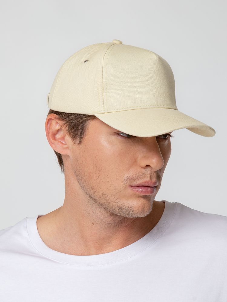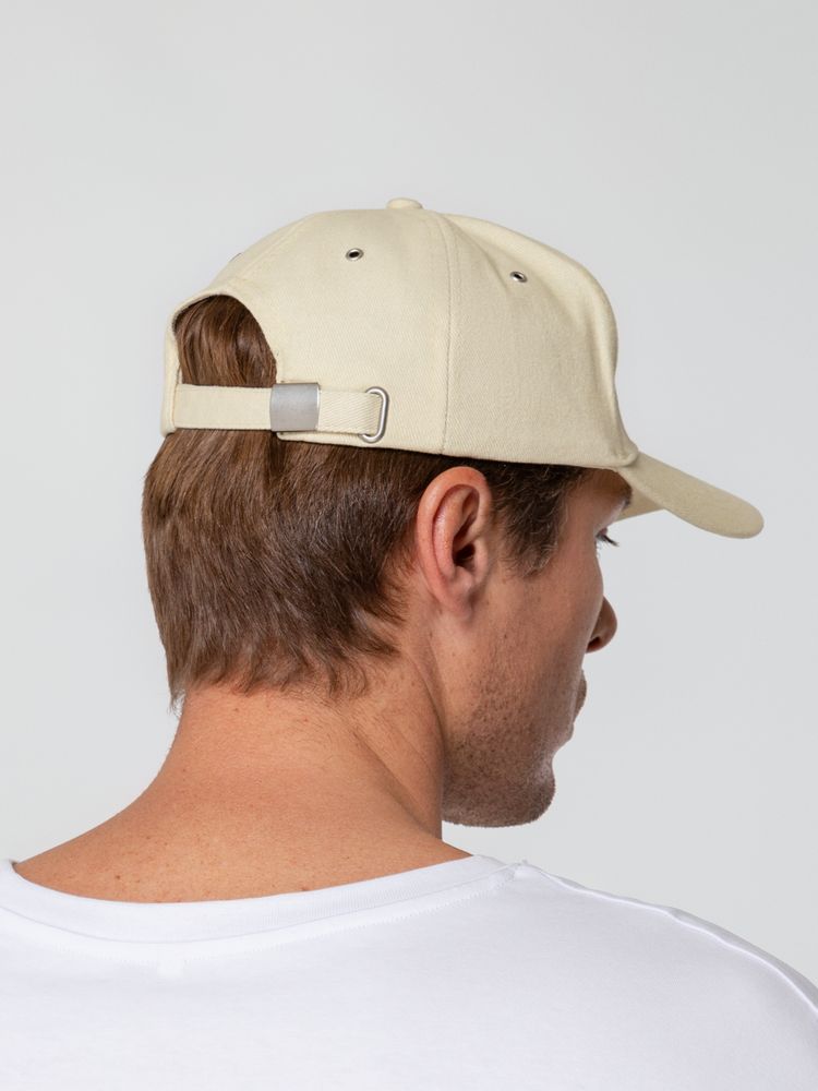 Минималистичная бейсболка с закругленным козырьком и большим местом для нанесения логотипа.