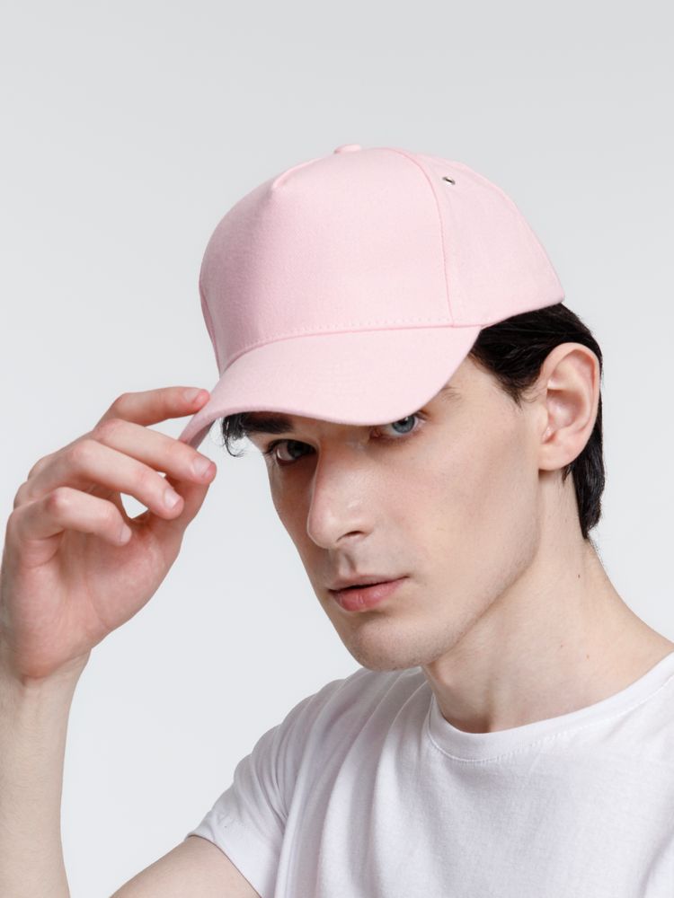 Минималистичная бейсболка с закругленным козырьком и большим местом для нанесения логотипа.