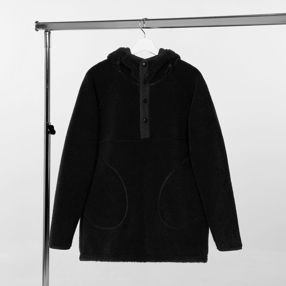 Анорак с капюшоном из современного двухслойного материала— искусственный мех снаружи, флис внутри.