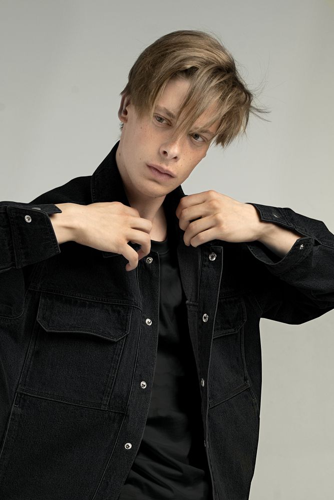 Джинсовая куртка унисекс на кнопках свободной посадки.
