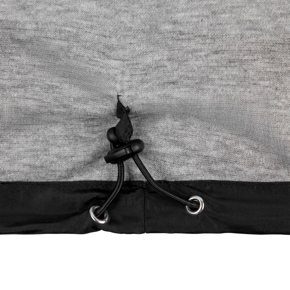 - Кулиска с эластичной резинкой по краю капюшона, по низу изделия и по горловине воротника изделия