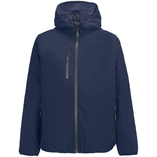 Мужская куртка софтшелл на молнии и с капюшоном.