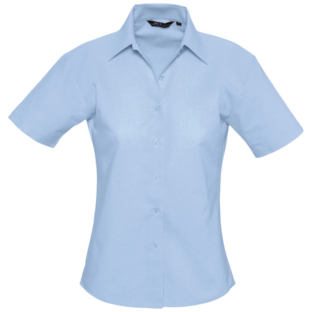 Рубашка из ткани «Оксфорд». Вытачки на груди, классический воротник, планка с семью пуговицами в тон.