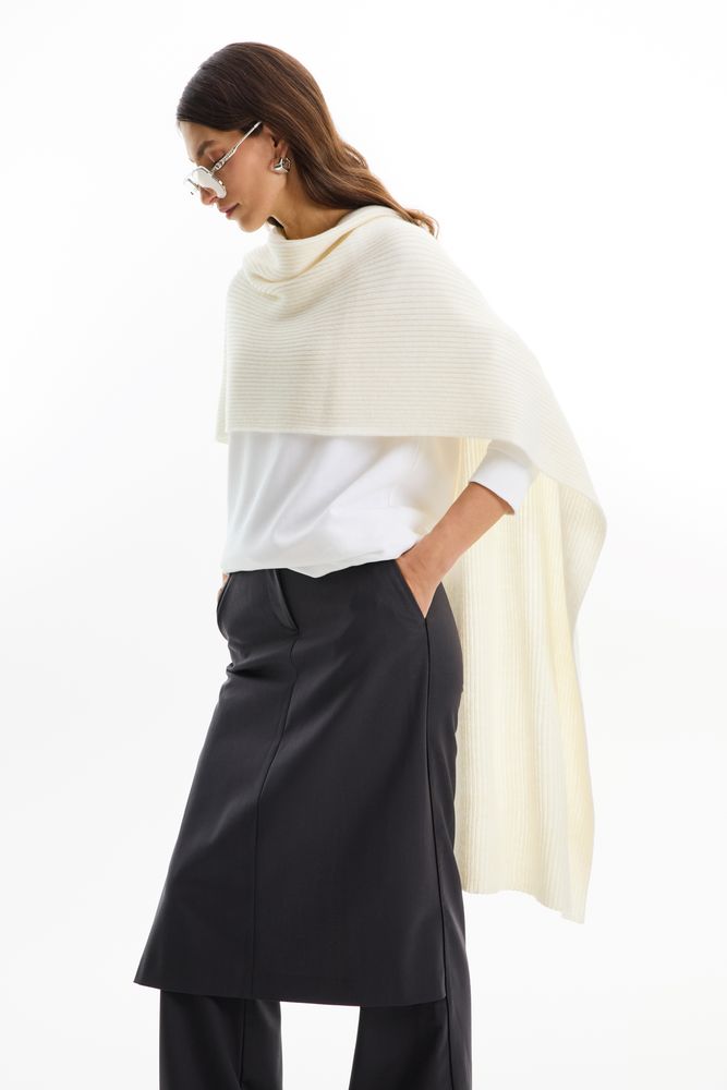 Воздушный шарф Bernard связан из мериносовой шерсти и имеет специальное отверстие, благодаря которому вы можете аккуратно повязать его легким движением руки. А если предпочитаете классические узлы, отверстие, спрятанное в фактурном узоре, не помешает повязать шарф привычным образом.