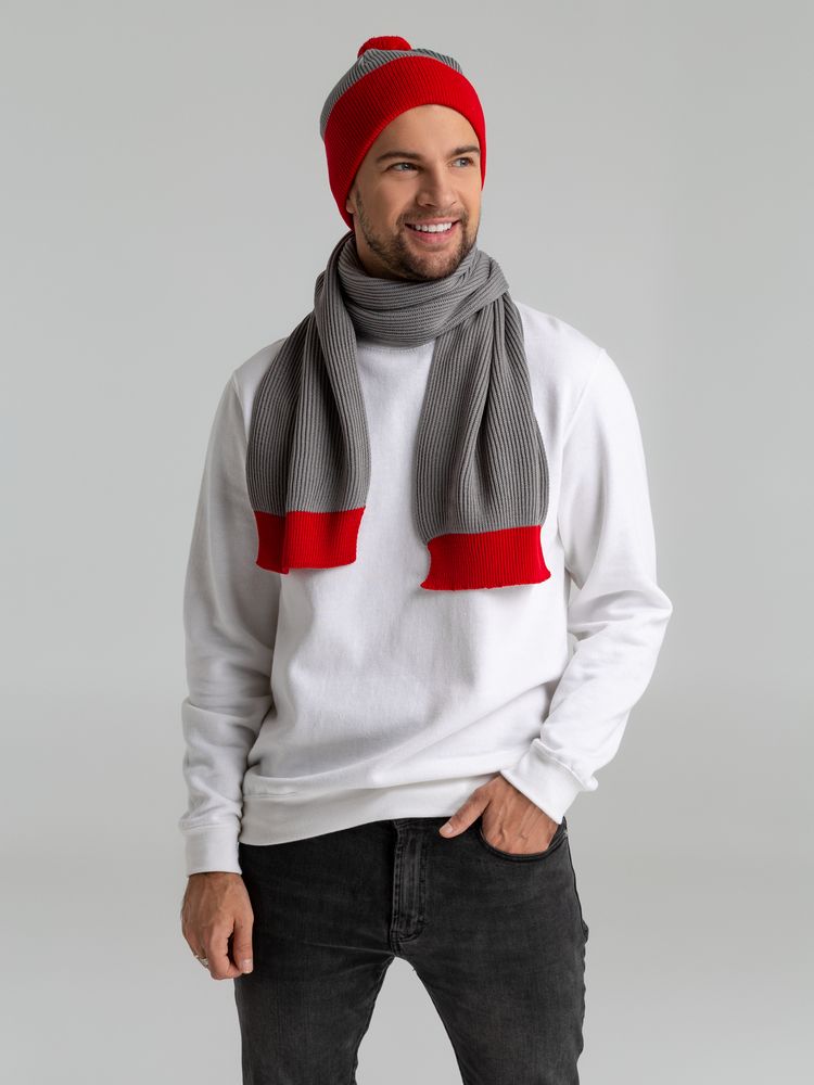 Двухслойный шарф фактурной вязки с контрастной отделкой.