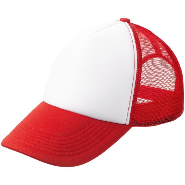 Стандартная модель с 5 клиньями без лобового шва в нестандартном исполнении. Передний клин и козырек выполнены из полиэстера с наполнителем из поролона, боковые и задние клинья — из сетки. Размер регулируется с помощью пластиковой застежки.