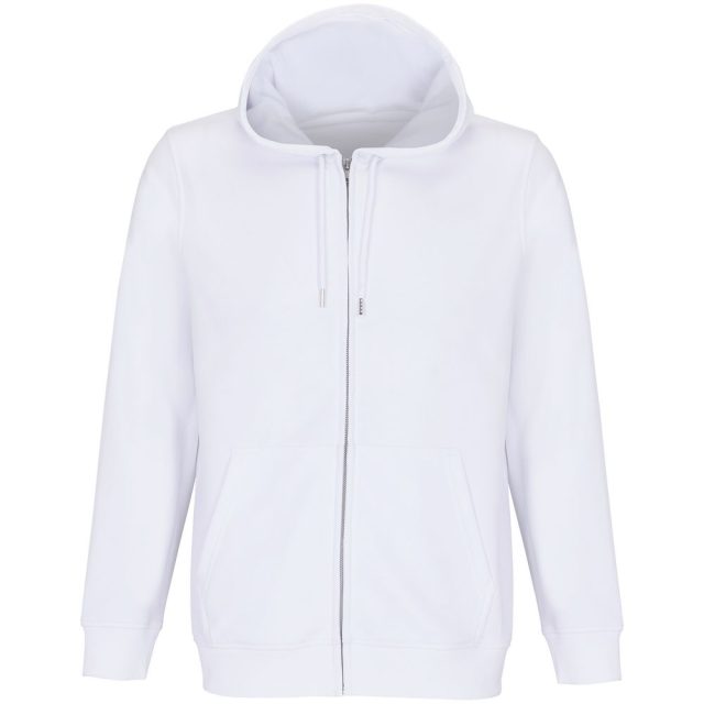 Базовая толстовка унисекс на молнии выполнена из органического хлопка и переработанного полиэстера.
