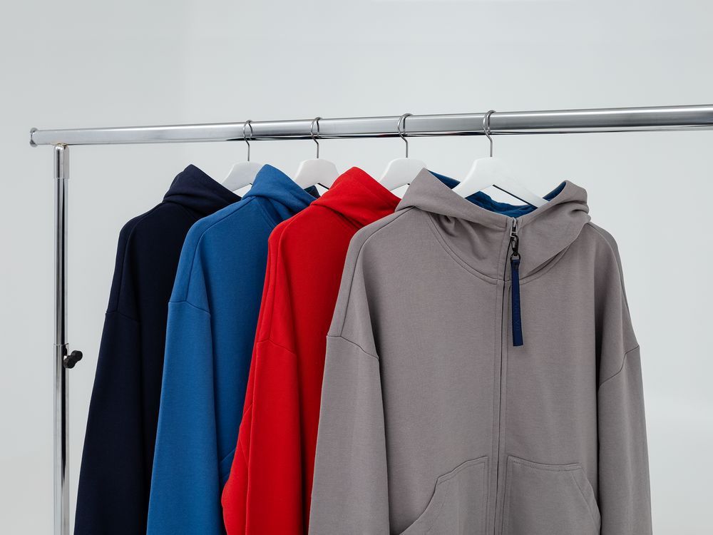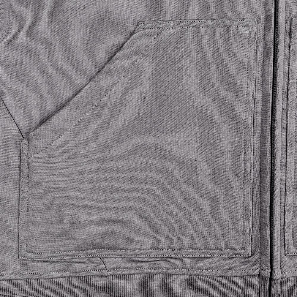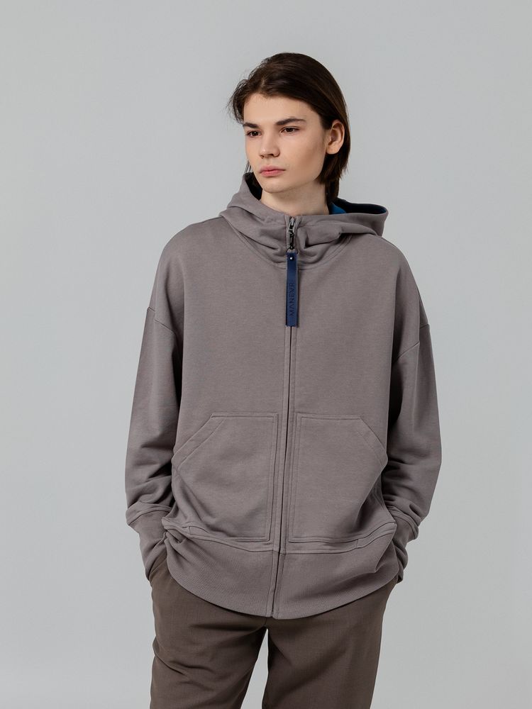 Толстовка унисекс на молнии свободного кроя со спущенным плечом и смещенным боковым швом. Внутренняя сторона без начеса.