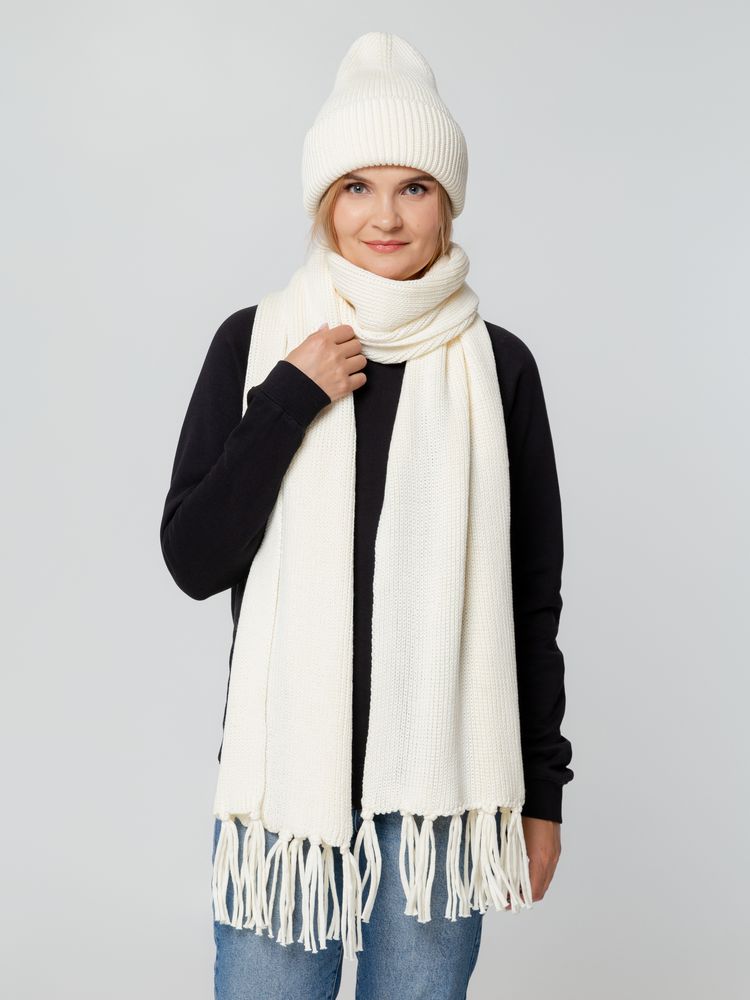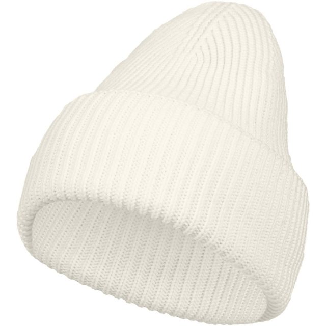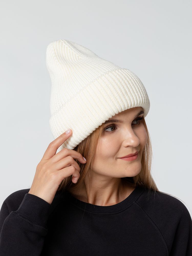 Удлиненная шапка объемной фактурной вязки с отворотом.