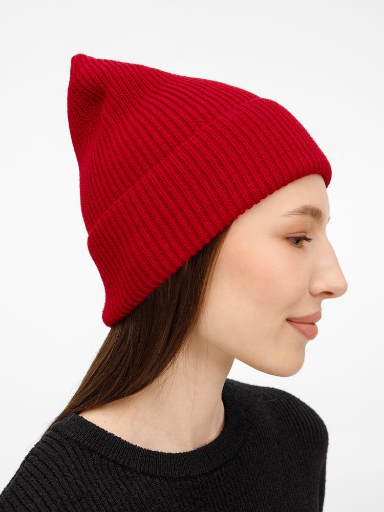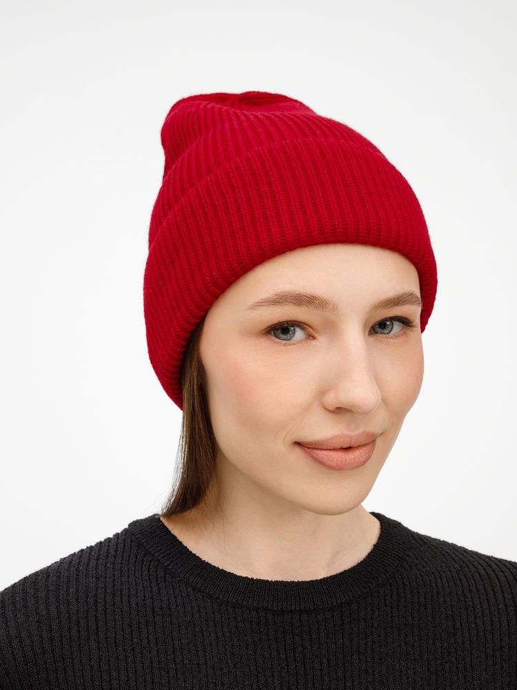 Удлиненный силуэт шапки Nobilis Mono из мягкой полушерстяной пряжи с широким отворотом создает стильный современный образ, а фактурная вязка добавляет объем и выразительность.
