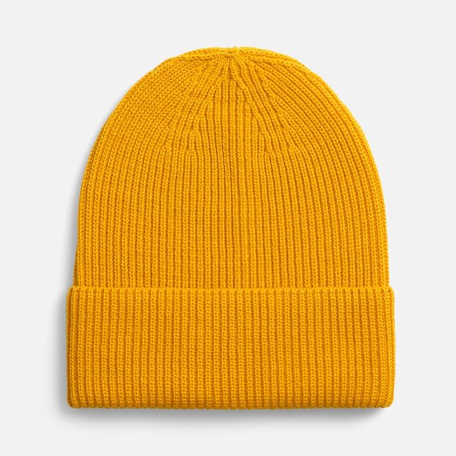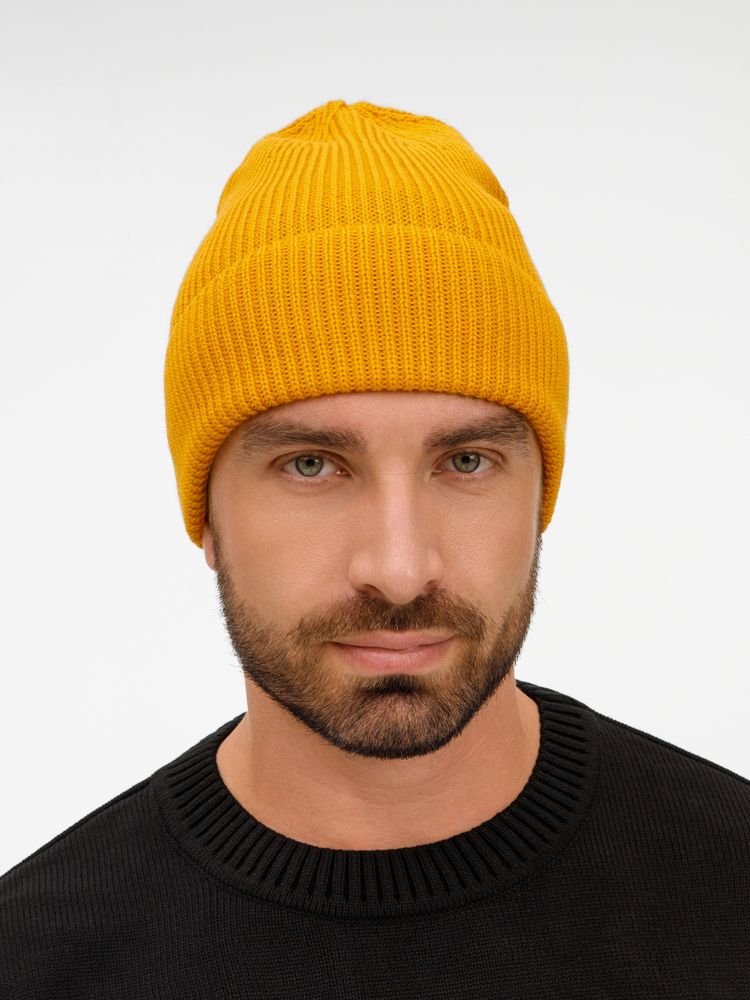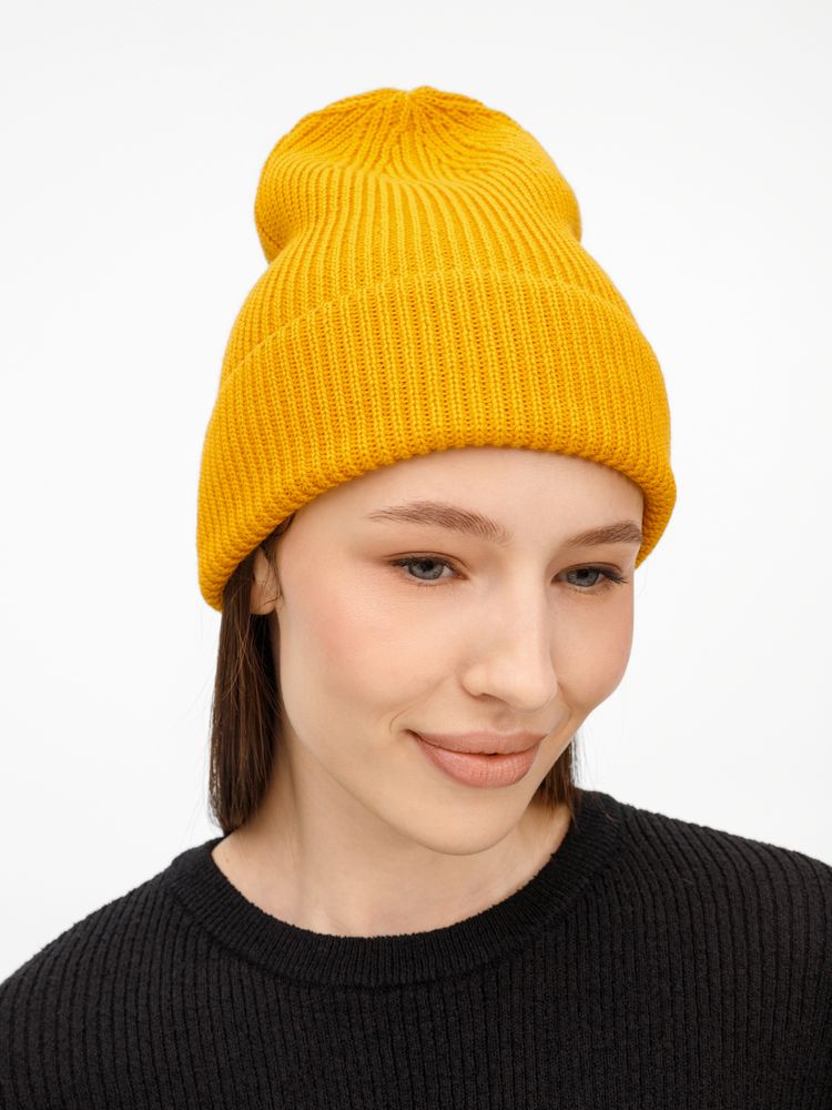 Однослойная шапка фактурной вязки с отворотом.
