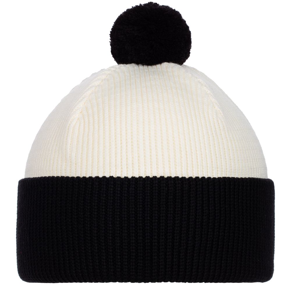Двуслойная шапка фактурной вязки с контрастным подворотом и помпоном.Поставляется в пакете с липким краем.