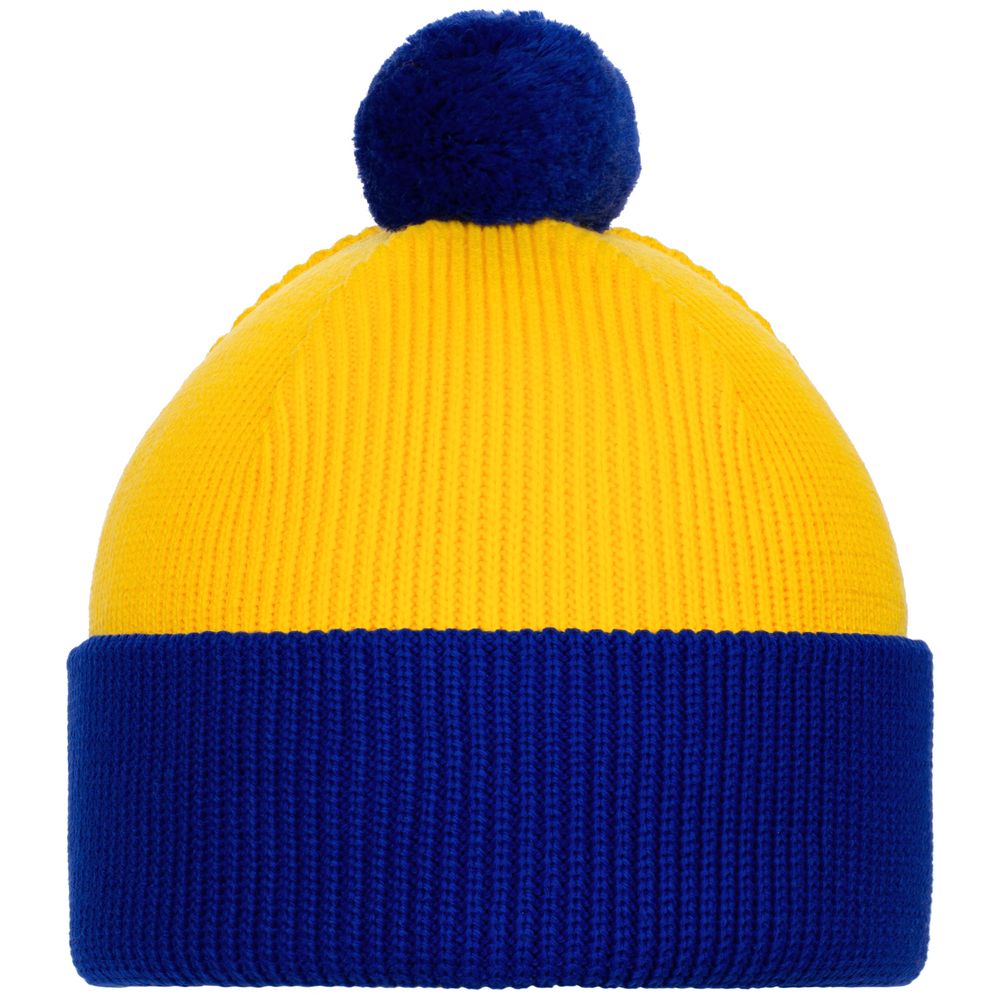 Двуслойная шапка фактурной вязки с контрастным подворотом и помпоном.Поставляется в пакете с липким краем.