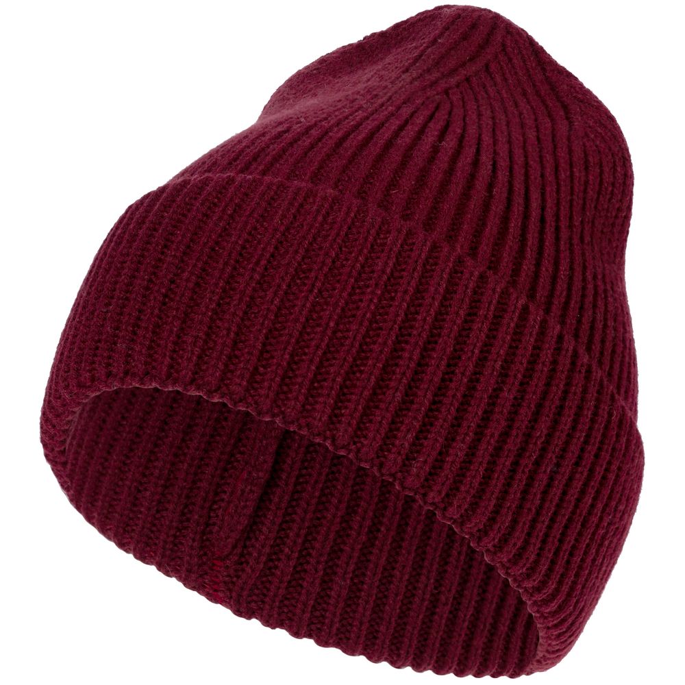 Однослойная шапка рельефной вязки с отворотом.