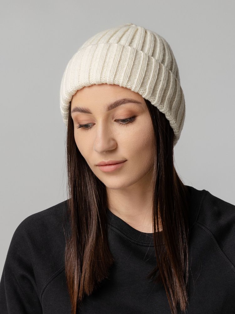 Модная шапка-бини, связанная резинкой, универсальна и подходит для самых непосредственных и легких образов.