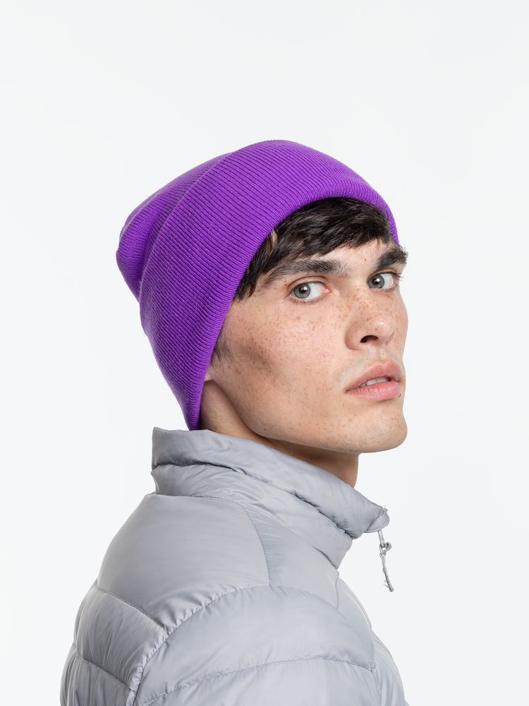 Двухслойная шапка из акриловой пряжи с регулируемым отворотом 7–10 см.