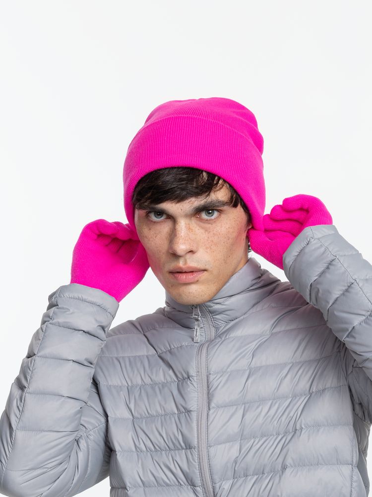 Двухслойная шапка из акриловой пряжи с регулируемым отворотом 7–10 см.