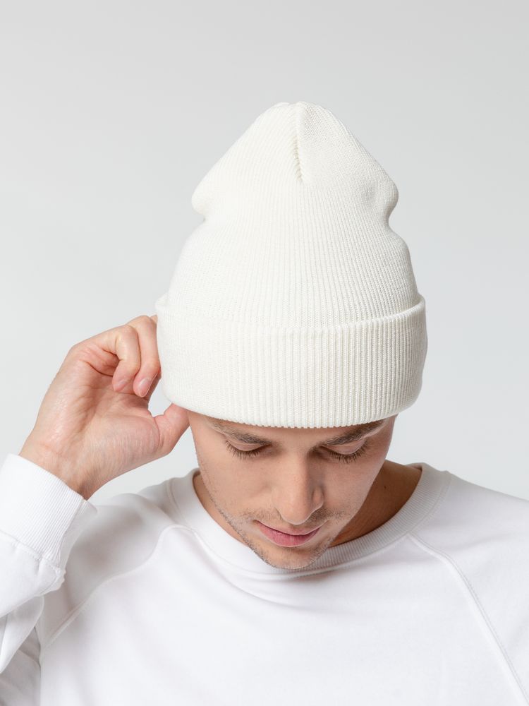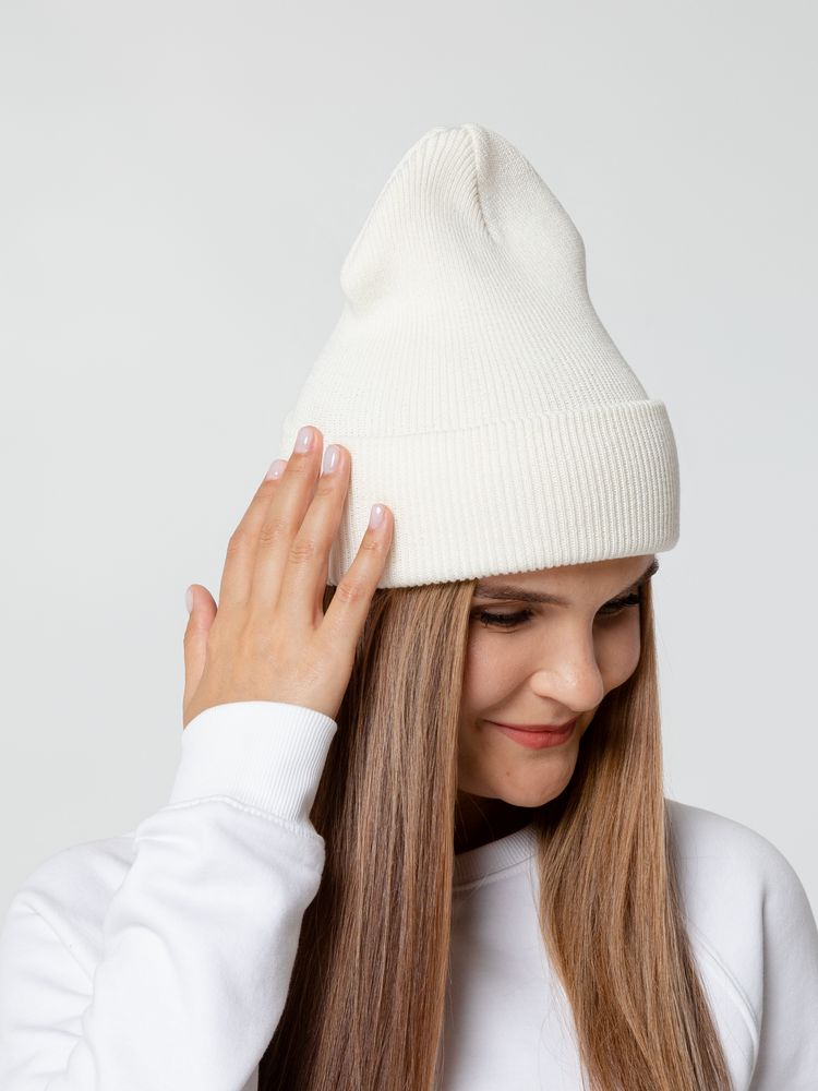 Двухслойная шапка, связанная резинкой, с широким отворотом.