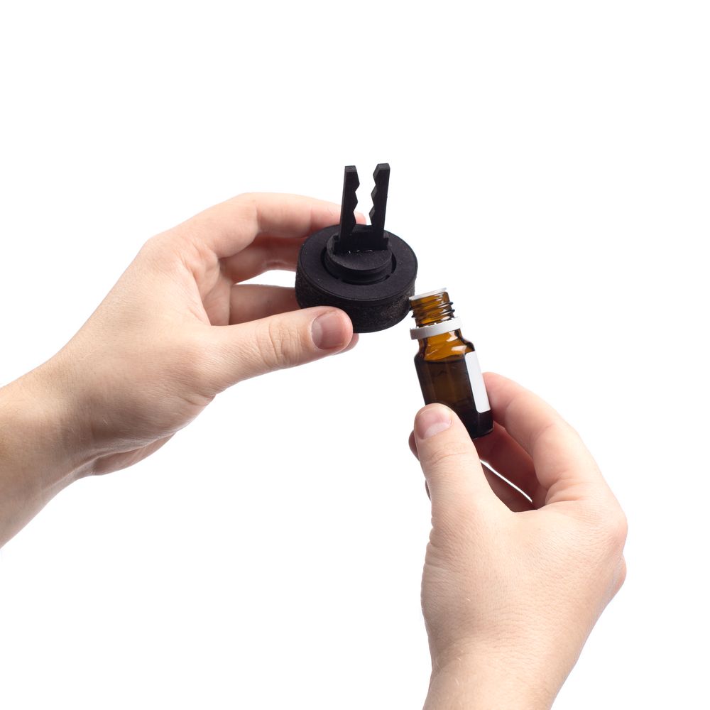 Sentir надежно крепится на дефлектор: благодаря воздушным потокам аромат будет равномерно распределяться по салону.