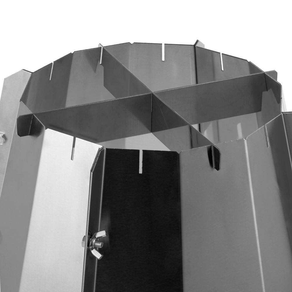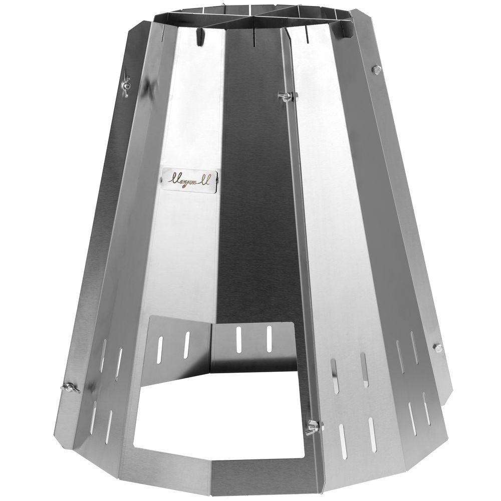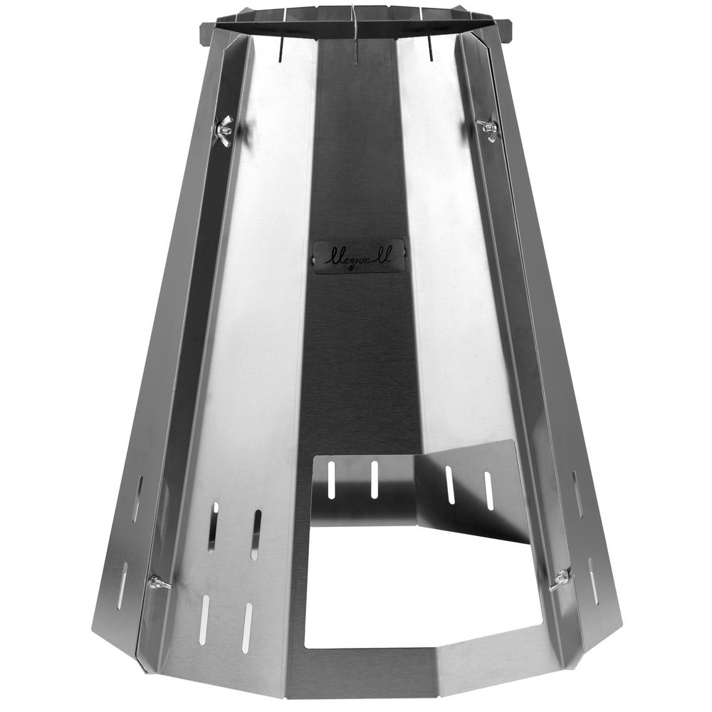 Кемпинговая печь облегчает процесс приготовления еды на костре — ее коническая форма позволяет максимально использовать жар дров, создавая эффект сопла и улучшая тепловую тягу. На нее можно установить казан или любую другую металлическую посуду.
