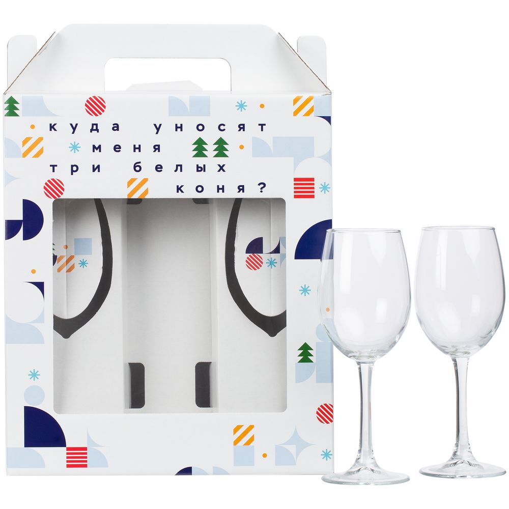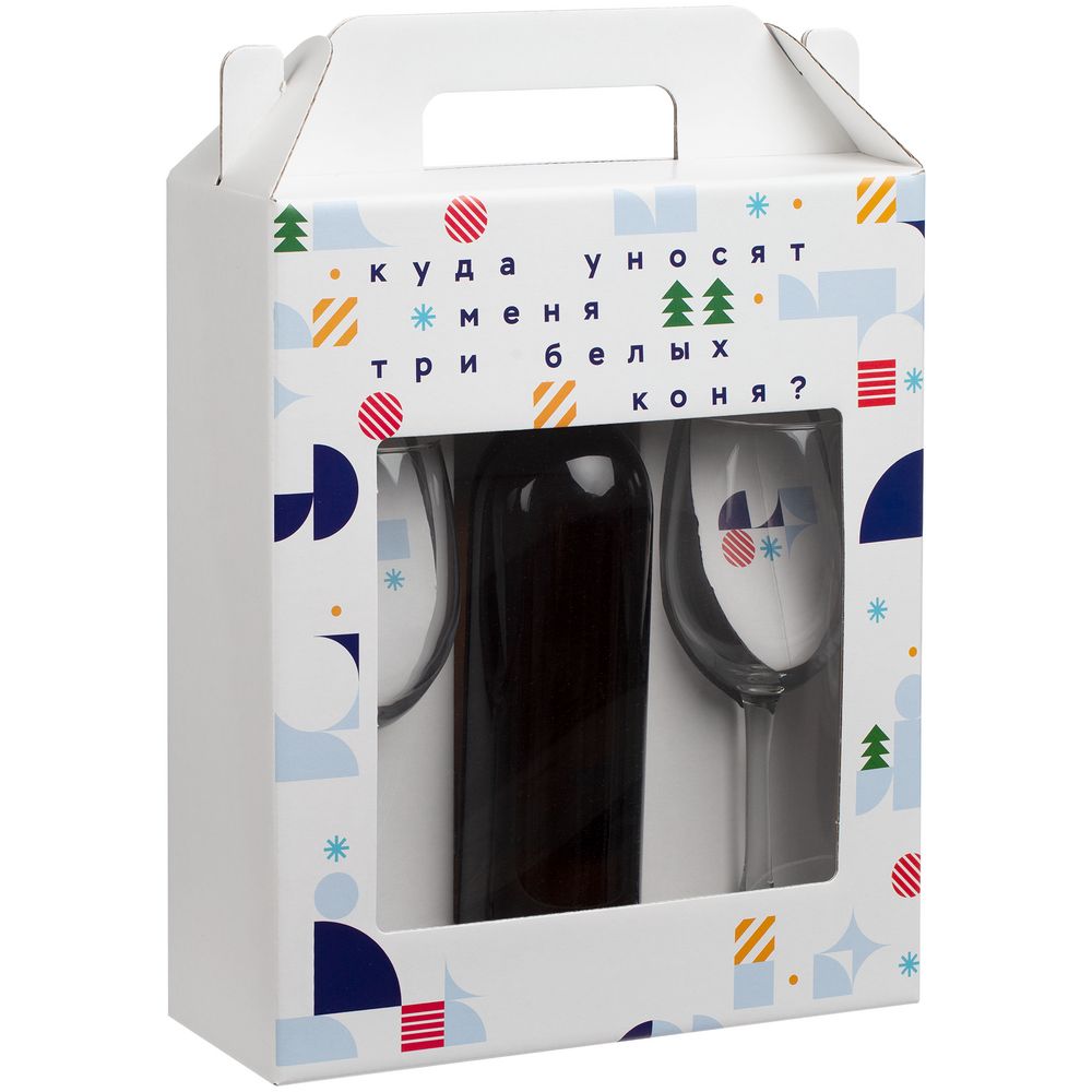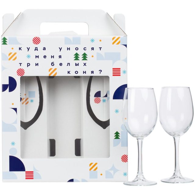 Удобная и стильная вариация для классического подарка с алкоголем — два бокала и место под бутылку. Беспроигрышная праздничная классика, «когда часы двенадцать бьют».
