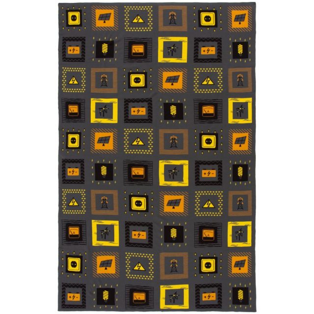 В каждой части общего рисунка, напоминающего лоскутное шитье, в самых теплых красках изображены главные символы электроэнергетики.