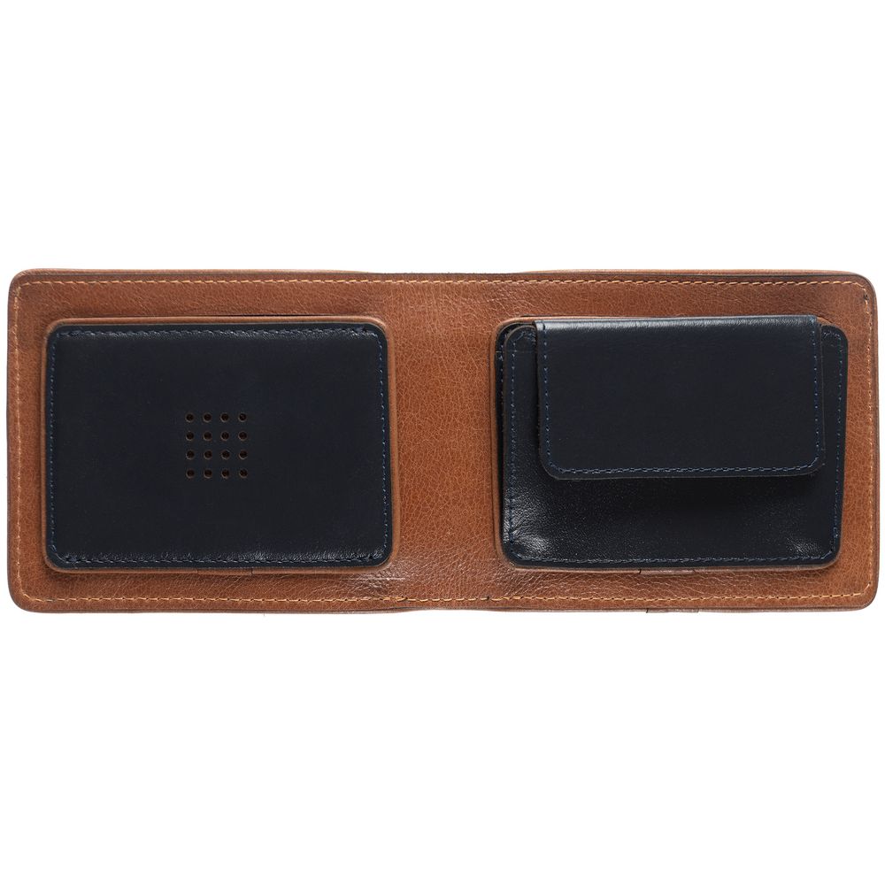 Чтобы передать этот удивительный контраст, для изделий Kalsa Palermo была выбрана гладкая натуральная кожа: глубокого синего цвета снаружи и светло-коричневого оттенка внутри. Оформленные в едином стиле, они легко собираются в подарочные наборы.