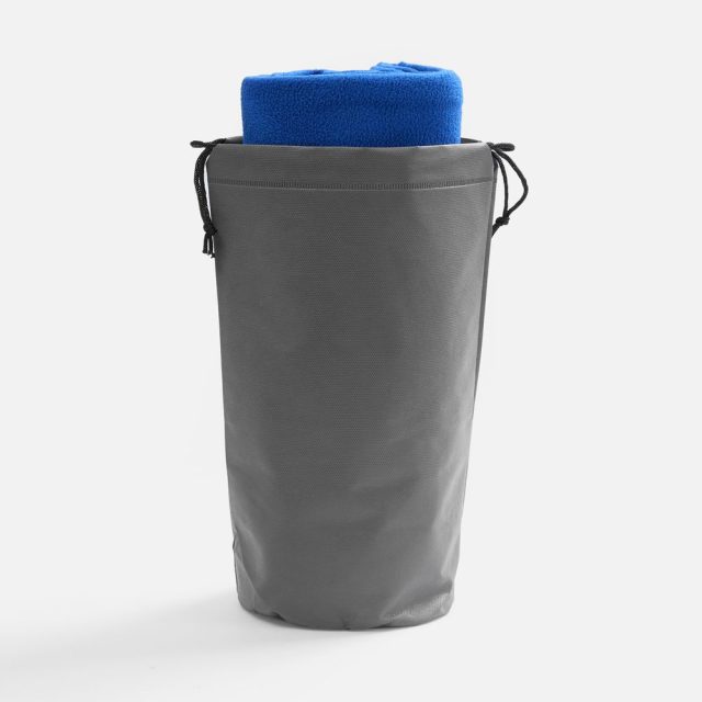 Чехол для пледа Raum выполнен из спанбонда и оснащен утягивающими шнурами.