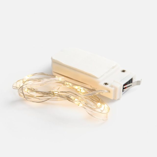 - Гирлянда работает на 2 батарейках типа CR2032. Батарейки в комплекте