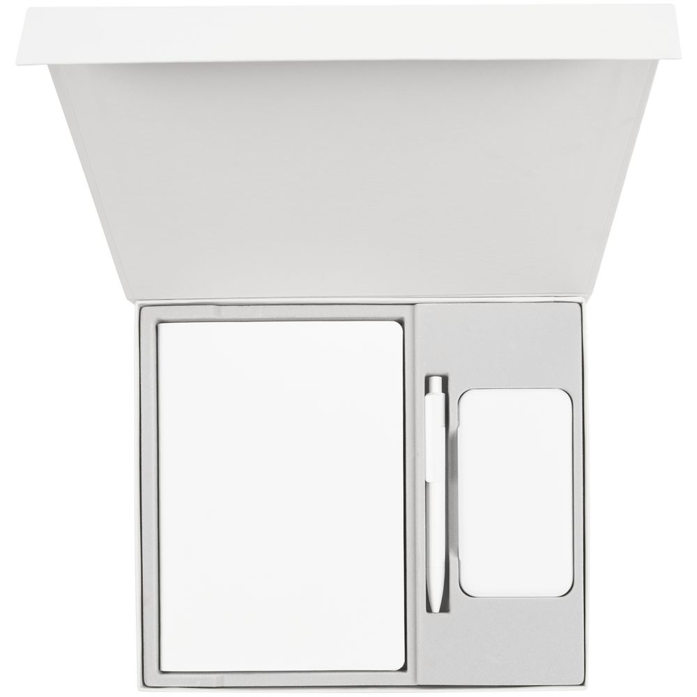 ежедневник — искусственная кожа; ручка — пластик; внешний аккумулятор — покрытие софт-тач, пластик; коробка — переплетный картон, покрытие софт-тач